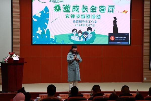 3月7日晚,桑道辅导员工作室于商务信息交流中心开展了一场名为“桑道成长会客厅”的女生节主题活动,主讲人为电子科技大学心理咨询中心徐美勤副教授。学院党委委员、副院长王军、相关系部负责人以及和盛三系三百名女生参加了此次活动。这是一场与全院女生双向奔赴的春日之约。王军代表学院为全院女生送上了温馨的祝福,介绍了女生节的来历——这是一个关爱女生,展现高校女生风采的节日,也希望在座的女生都能自信闪耀,成为更好的自己。...