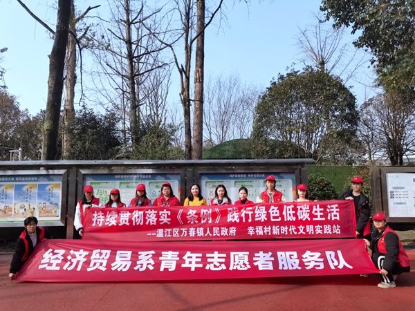 三月春风暖人心,雷锋精神伴我行。近日,经济贸易系青年志愿者服务队与温江区万春镇幸福村新时代文明实践站工作人员一同开展了一场以“持续贯彻落实《成都市生活垃圾管理条例》(以下简称条例)、践行绿色低碳生活”为主题的志愿宣传服务活动。活动当天,青年志愿者们与实践站工作人员早早来到现场,通过摆点宣传、发放宣传资料等形式,向村民们详细介绍了《条例》的主要内容和重要意义。志愿者们用生动形象的语言,向参与活动的群众讲解了绿色低碳生活的理念和方法,...