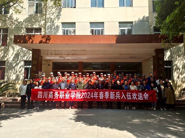 男儿立志建功勋,火热青春献祖国。3月13日中午,学院举行2024年春季新兵入伍欢送会,学院党委委员、副院长王军、青羊区武装部军事科科长文蜀章、康河街道武装部长彭勇、党委学生工作部负责人、各系党、团总支书记,入伍新兵及文家校区部分同学参加了欢送仪式。欢送会上,首先播放了入伍新兵的辅导员们精心录制的祝福视频。他们对即将踏上征途、走进军营的新战士表示热烈祝贺,同时勉励新兵们在部队要牢记使命、珍惜荣誉,努力提升自身政治素养和军事本领,...