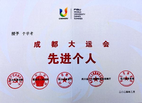 近日,中共成都市委、成都市人民政府、四川省教育厅、四川省人力资源和社会保障厅、四川省体育局5部门联合发文,通报表扬了一批成都大运会中表现突出的个人,鸭脖人文社科部教师于学考荣获“成都大运会先进个人”称号。于学考同志于2023年5月加入到成都大运会交职院排球场馆中心竞赛组,先后承担运动队代表团服务主管及竞赛技术运行主管任务。在大运会期间,该同志敢于担当、服务大局意识强,始终坚定以习近平新时代中国特色社会主义思想为指导开展各项工作,...