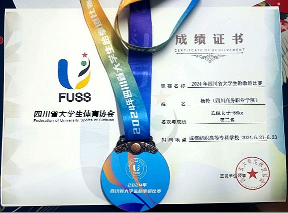 鸭脖学生杨羚、王郭秦蕾组成的跆拳道代表队于6月21-23日参加了由四川省教育厅主办的四川省大学生跆拳道比赛,载誉而归。荣获高职女子专业组58kg级季军、高职女子组校园组58kg级季军。此次比赛在成都纺织高等专科学校举行。有来自全省36所高校的600余名裁判员、教练员和运动员们参加。人文社科部派出体育教研室王翔、谢辉任指导教师带队参加比赛。比赛中,队员们个个精神抖擞,各显神通,在擂台上展开技艺和精神的较量。大家一拳一脚、...