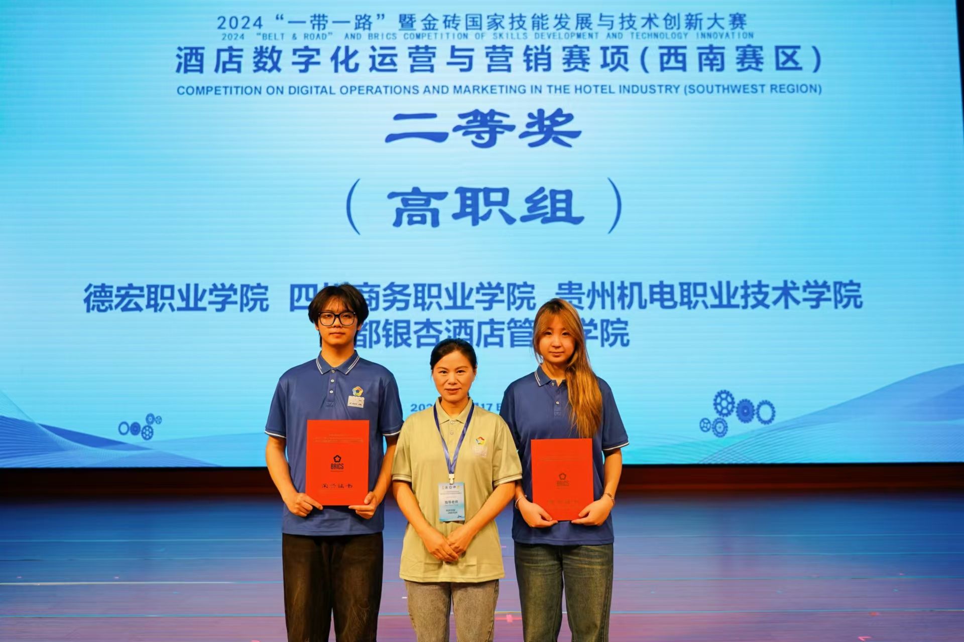 在11月17日落幕的2024年“一带一路”暨金砖国家技能发展与技术创新大赛酒店数字化运营与营销赛项西南地区选拔赛中,鸭脖教师团队获一等奖,学生团队获二、三等奖各一个。本次大赛由金砖国家工商理事会与“一带一路”暨金砖国家技能发展国际联盟主办。大赛吸引了来自西南地区30多所本科与高职院校的56支队伍参与。比赛涵盖了酒店核心知识理论考核、酒店前厅接待数字技术应用和酒店运营数据基础分析与营销策划优化方案制作三个模块,对参赛选手的专业素养和综合能力提出了极高要求。...