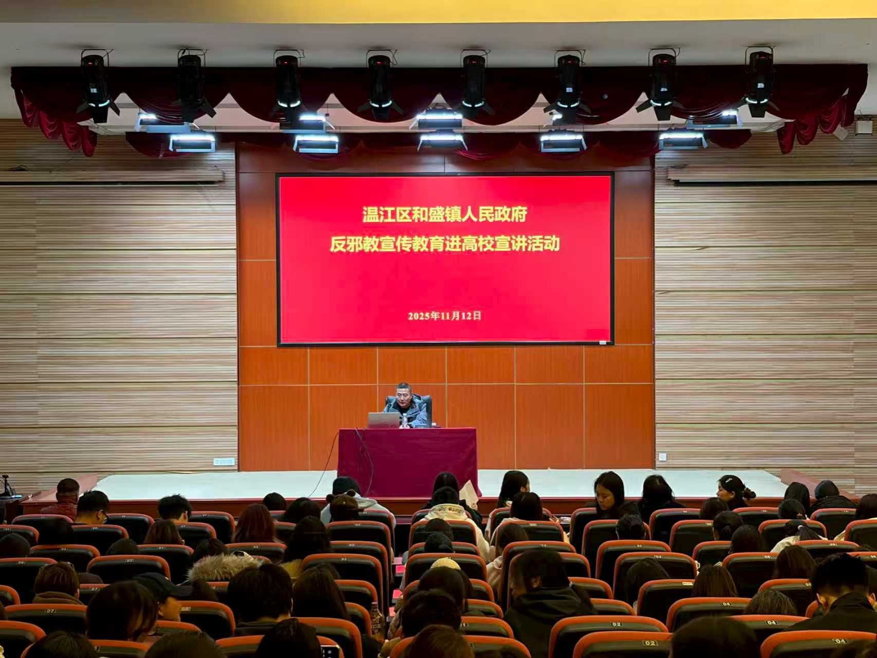 为切实增强鸭脖师生识别和抵制邪教的意识和能力,筑牢校园反邪教思想防线,11月12日,和盛镇人民政府联合鸭脖开展的反邪教专题宣讲活动在和盛校区商务信息交流中心成功举行。学院党委宣传统战部、后勤保卫处以及200余名学生参加了宣讲活动。本次活动旨在通过权威解读和案例警示,引导广大师生筑牢安全防线,守护平安校园。宣讲会上,来自和盛镇人民政府平安建设办的三名工作人员分别围绕“崇尚科学、抵制邪教”“铸牢防火墙、防范电信网络诈骗”...