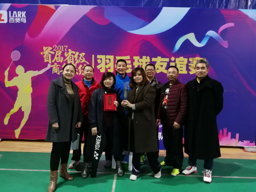 11月25日在猛追湾羽毛球馆举行的2017年首届四川省商务系统羽毛球友谊赛中,鸭脖羽毛球队勇夺团体冠军;王一稀获得女子单打冠军,江亮、丁德君获得男双第三名。