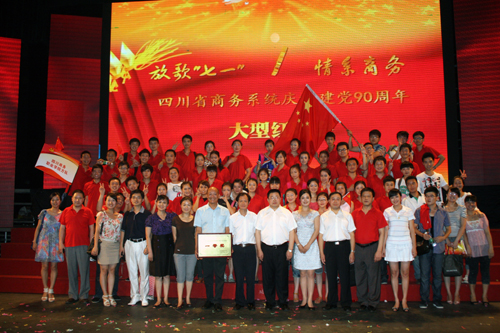 ——热烈祝贺鸭脖师生合唱团在参加四川省商务厅庆祝建党90周年“放歌七一,情系商务”大型红歌会比赛中,取得一等奖的优异成绩! 6月25日下午2:30,四川省商务厅庆祝建党90周年“放歌七一,情系商务”大型红歌会在成...