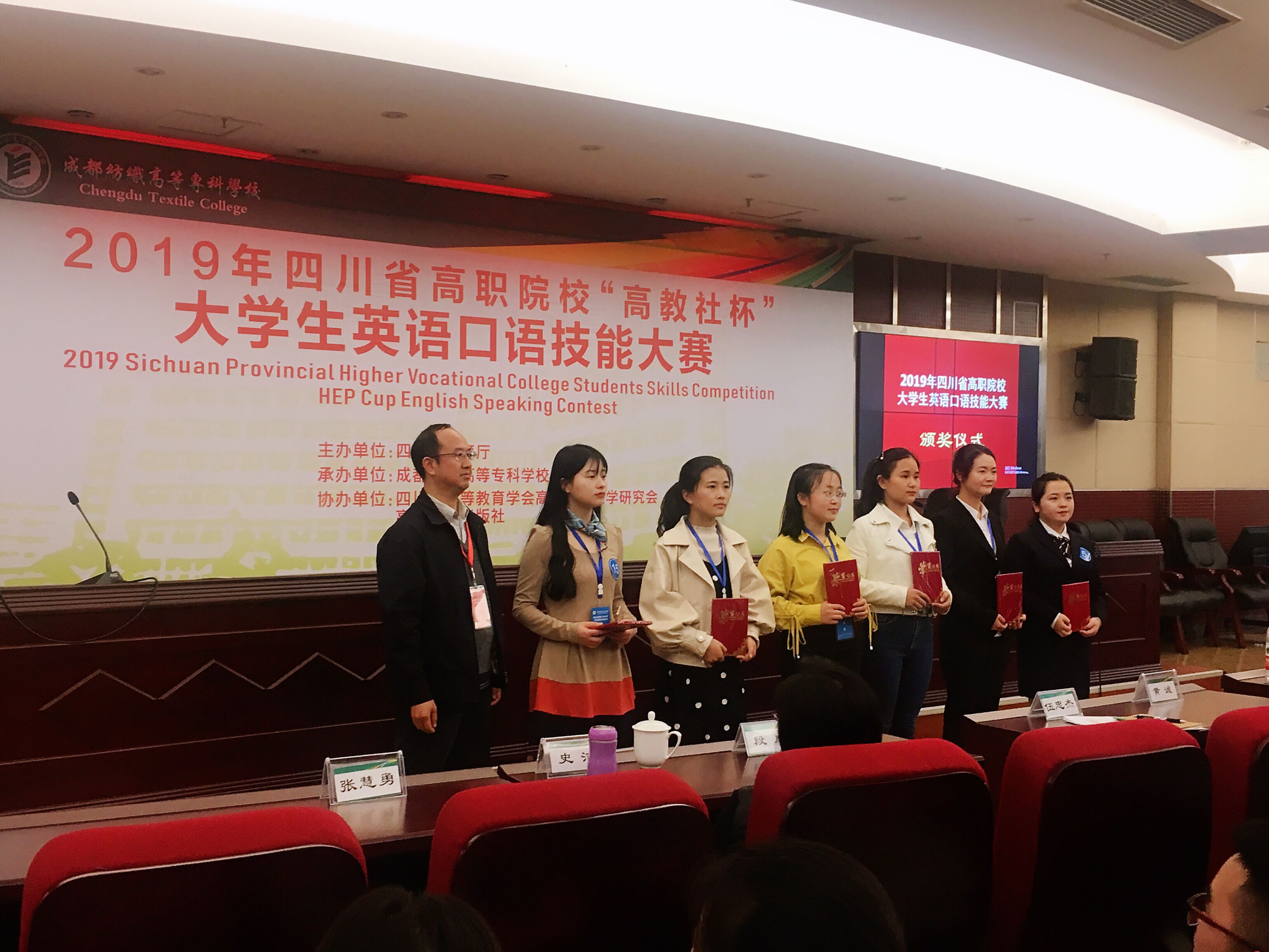 4月4日,2019年四川省高职院校“高教社杯”大学生英语口语技能大赛在成都纺织高等专科学校隆重举行。鸭脖经贸系商务英语专业学生斩获专业组三等奖。本届大赛由四川省教育厅主办,成都纺织高等专科学校承办、四川省高等教育学会高校外语教学研究专业委员会、高等教育出版社协办,总共62所省内高等院校参赛。比赛分英语专业组、非英语专业组,两组学生同时比赛,分别评奖。由鸭脖经贸系指导教师穆然指导的18级商英专业学生王若兰...