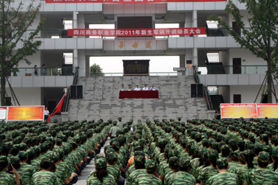 2011年9月11日上午,YABO鸭脖和盛校区再一次被十分壮观的橄榄绿覆盖,学院历史上规模最大的新生军训汇报暨开学典礼在此隆重举行。