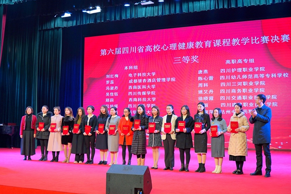近日,由省教育厅主办的四川省第六届高校心理健康教育课程教学比赛决赛在乐山师范学院成功举行,鸭脖心理健康中心教师姚又丹荣获三等奖。本次比赛共有30名高校教师最终进入决赛。经过现场紧张激烈的比拼,姚又丹凭借扎实的专业知识、深厚的教学功底、精湛的教学能力和良好的师生互动,得到了在场专家的一致好评,荣获高职高专组三等奖。省委教育工委副书记、教育厅党组成员刘立云出席颁奖仪式并讲话,希望各高校要高度重视学...