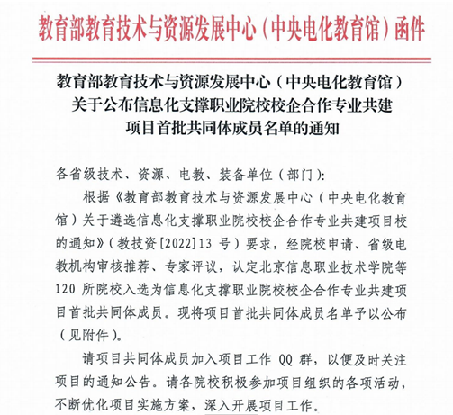 9月1日,教育部教育技术与资源发展中心(中央电化教育馆)公布了“信息化支撑职业院校校企合作专业共建项目首批共同体成员”名单,鸭脖信息技术系(大数据技术专业群)、教务处、实践教学中心等相关部门协作申报,成功入选。全国首批成员共120家,其中省内高职院校共10所。 近年来,学院积极响应省数字化改革号召,以数字化思维、数字化技术赋能高职院校核心教育教学工作,探索专业培养新模式,变革课...