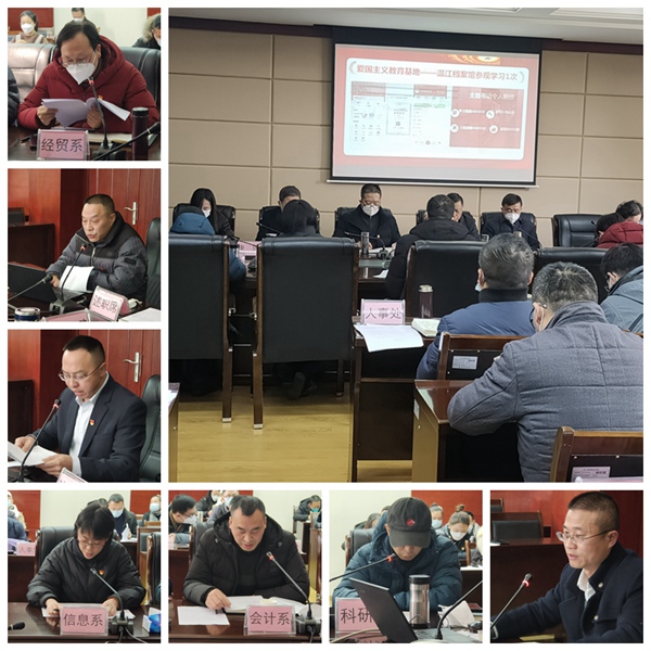 1月6日,学院召开党委会扩大会议,开展2022年度基层党组织书记抓党建工作述职评议。22位党总支书记、直属支部书记向党委提交抓党建述职报告。8位党组织书记现场汇报抓党建工作情况。学院党委书记唐柯主持会议。经济贸易系总支、经营管理系总支、旅游管理系总支、信息技术系总支、会计系总支、设计艺术系总支、科研和国合中心支部、实训中心支部等8位书记围绕思想建设、组织建设、落实基层党建责任制、上年度述职评议考核整改清...