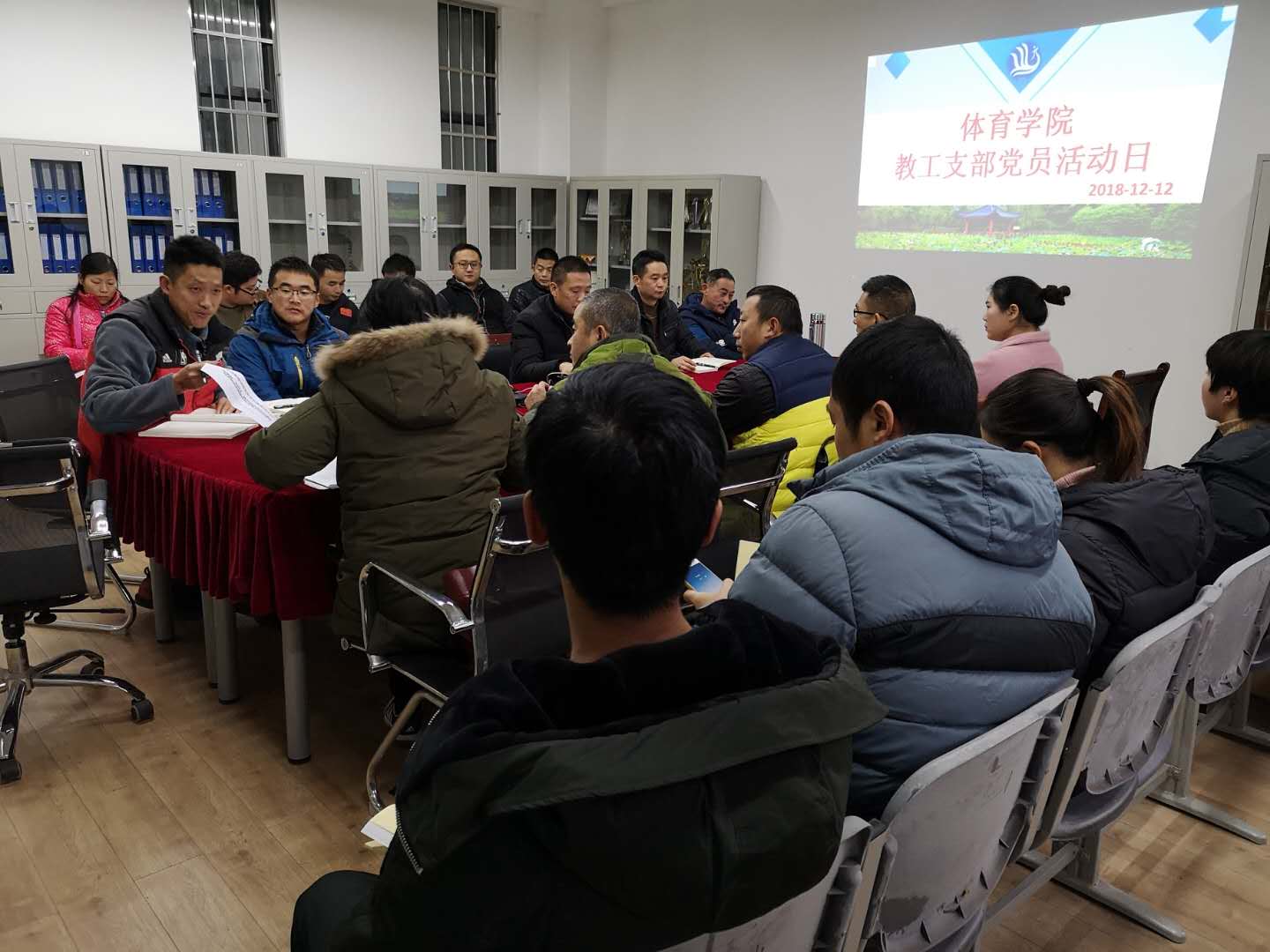 20181212日下午,贝博官网教工党支部在传媒楼2019会议室召开了党员活动日学习活动。本次活动由学院党总支书记佘涛同志主持,全体党员参加了学习活动。