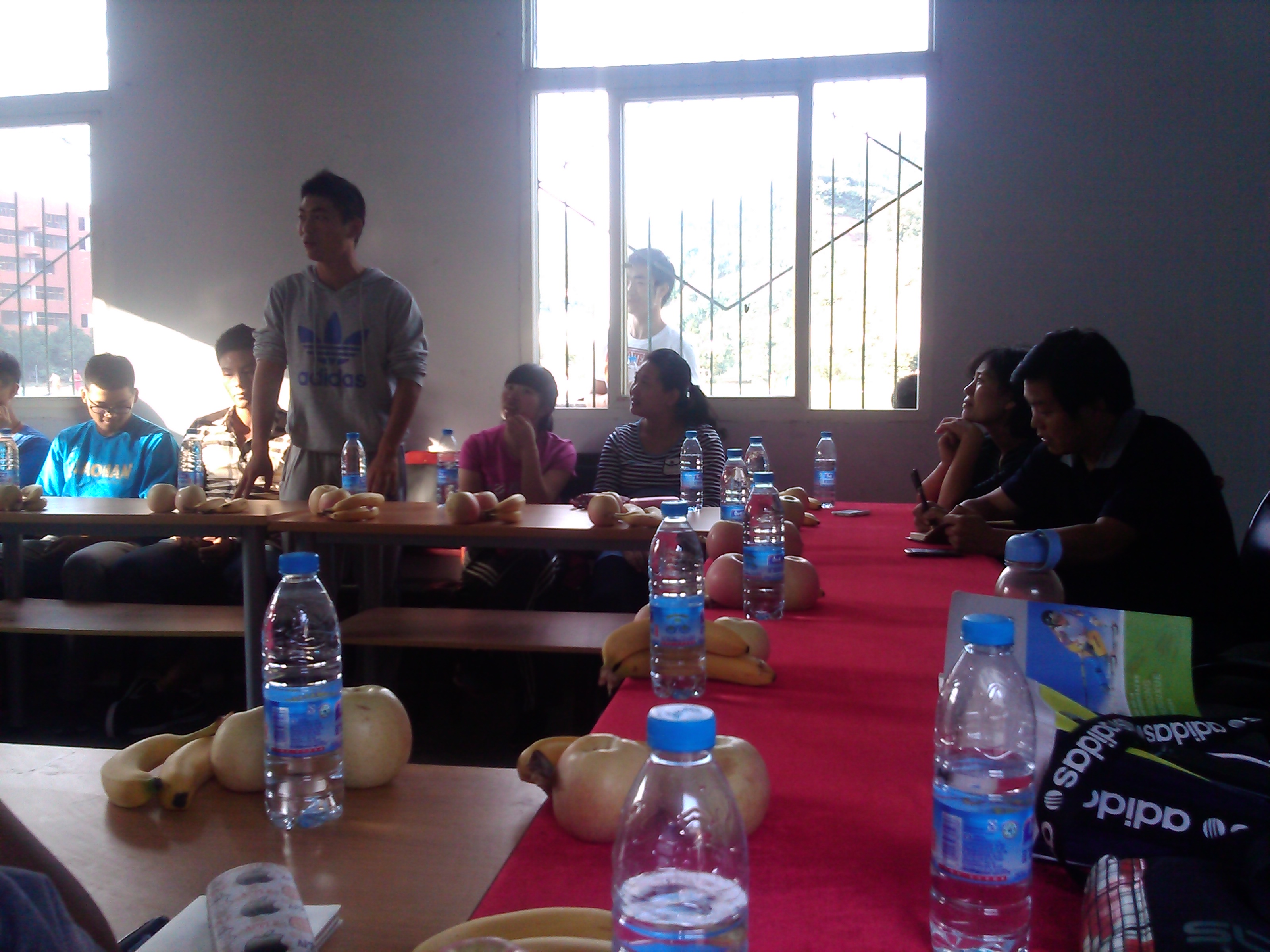 座谈会分为三个阶段进行:新生自我介绍、各位领导讲话、自由发言讨论。贝博官网领导老师对本次座谈会十分重视,在会上对每位同学的学习、生活表示亲切的问候。会上气氛十分活跃,同学们也能够敞开心扉与各位领导老师沟通。在座谈会进行中,董主任详细的讲解了同学们在进入大学后应该怎样学习,如何明确自己的目标与方向,树立正确的人生观、世界观。佘书记鼓励省外同学们要多与本地同学共同学习,共同进步,入乡随俗,尽快适应大学生活,发扬我们体育学生能吃苦耐劳的精神,将这里当做第二故乡,让自己的梦想从这里起航。