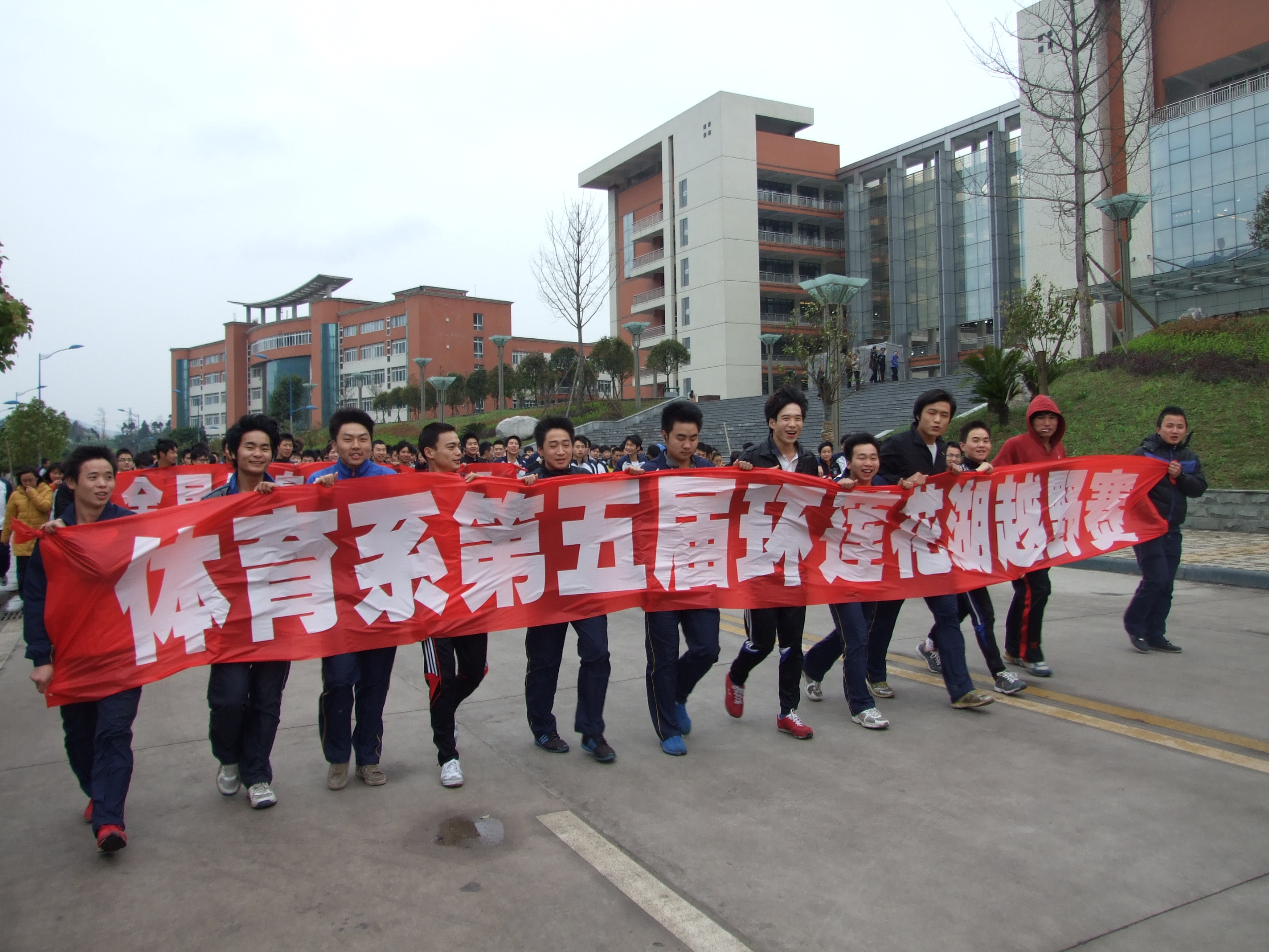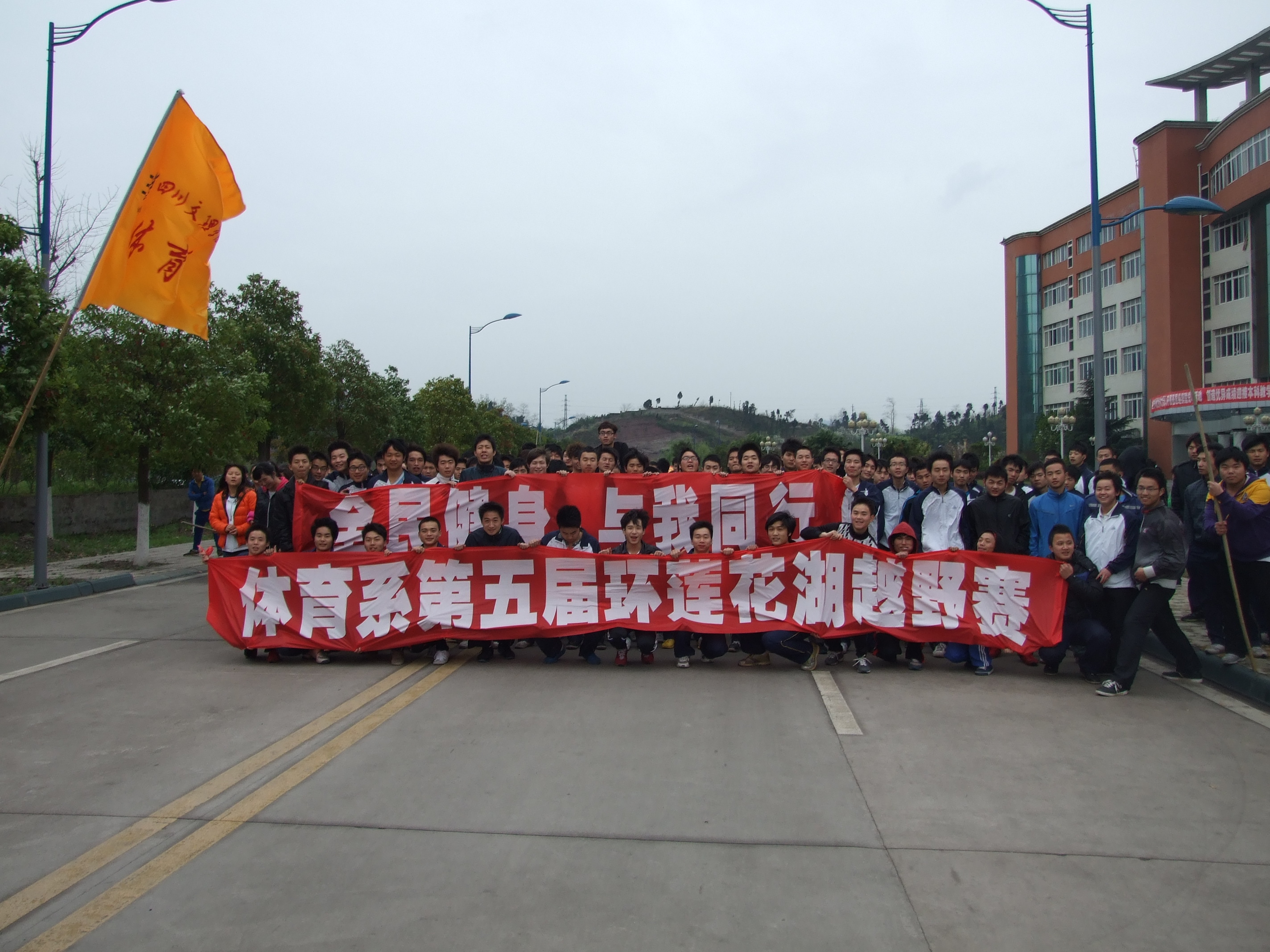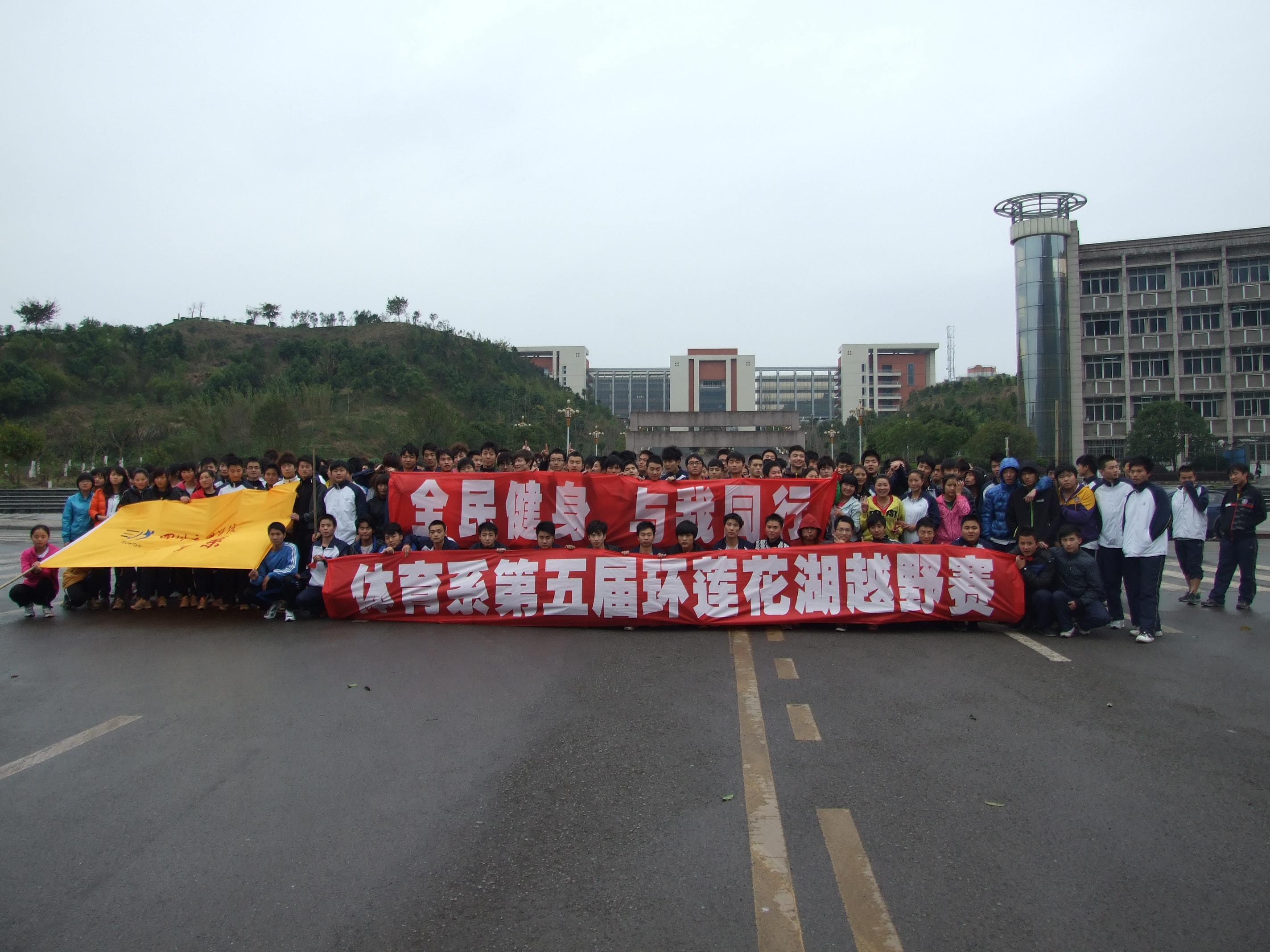 为全面推行体育健康工程,营造“健康、和谐、文明、绿色”的校园文化氛围,丰富大学生的业余文化生活,3月22日下午3点,体育系第五届环莲花湖越野赛在莲湖校区隆重举行。体育系2010级、2011级全体同学及数名2009级自愿参加者,共计500余名同学参加了本次比赛。