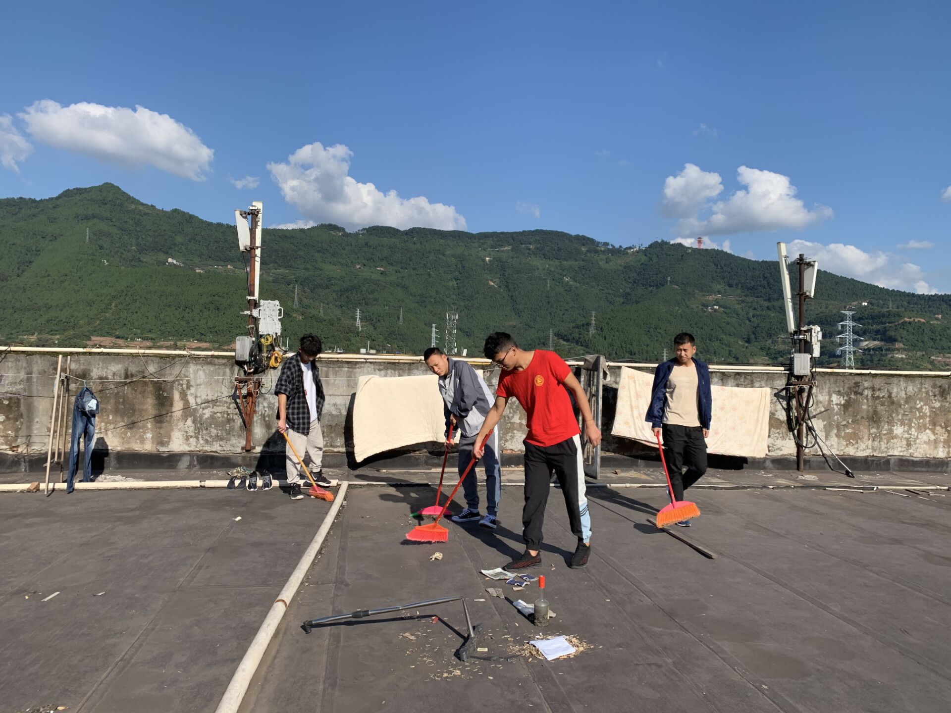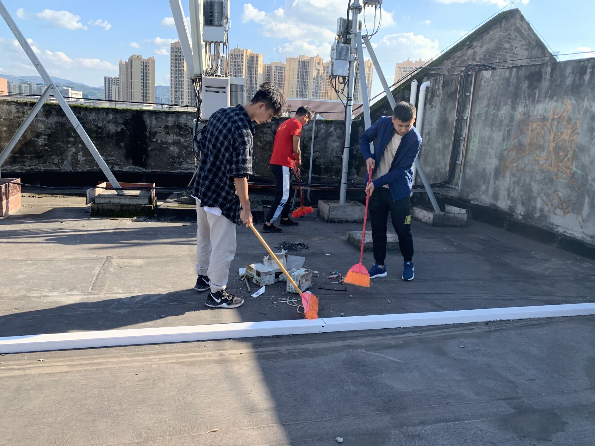 BB贝博艾弗森官方网站由马思远老师带队,劳生部带领BB贝博艾弗森官方网站劳动志愿者分组对九舍进行清洁,主要针对公寓天台、楼道、走廊、学习室窗户、消防栓等边边角角进行排查,清扫。坚决做到地面无垃圾,无积水,过道墙砖明亮干净,无小广告等。同时,大力宣传“四城同创”和文明公寓的工作要求,倡导大家共建共享更加美好生活的环境。