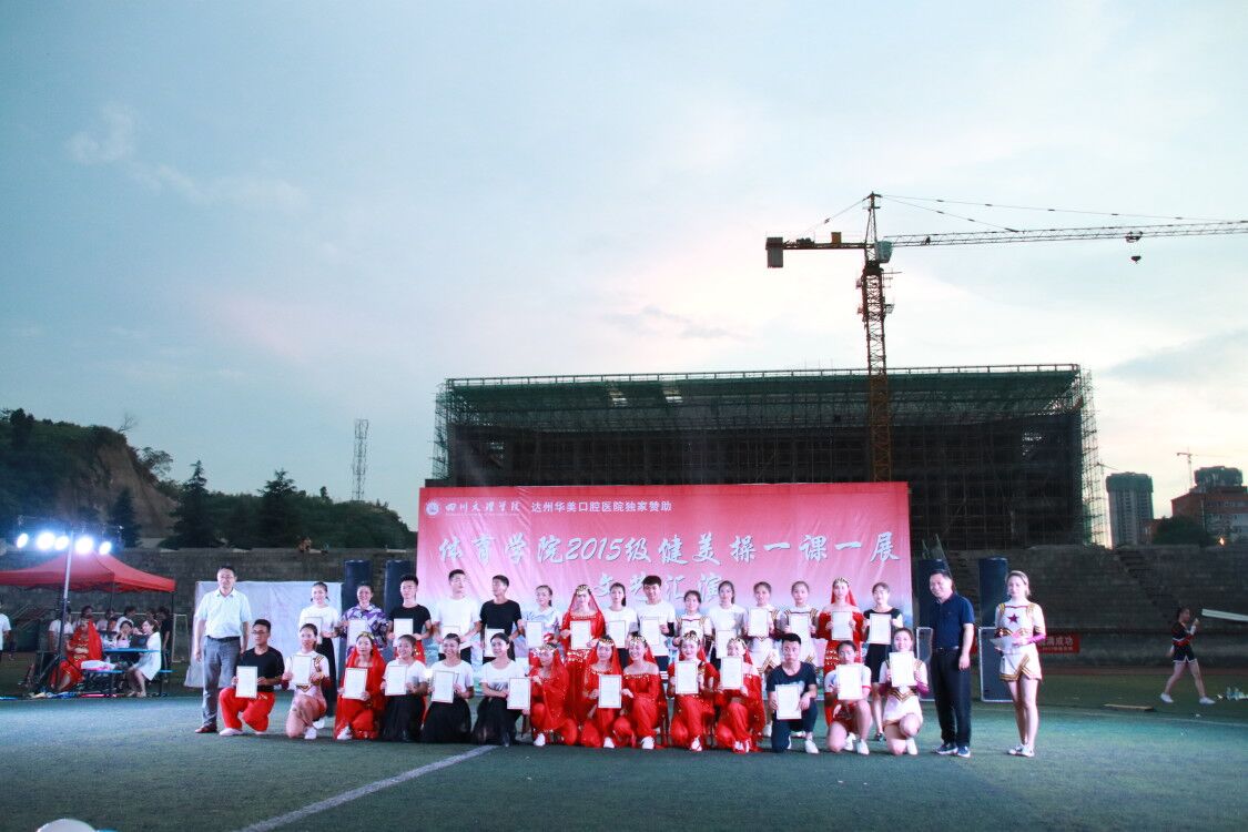 6月27日19:30,贝博官网在田径场开展了2015级健美操一课一展文艺汇演。学校人事处张皓处长、教务处曾宪文副处长、BB贝博艾弗森官方网站教师及400余名学生共同观看了此次演出。