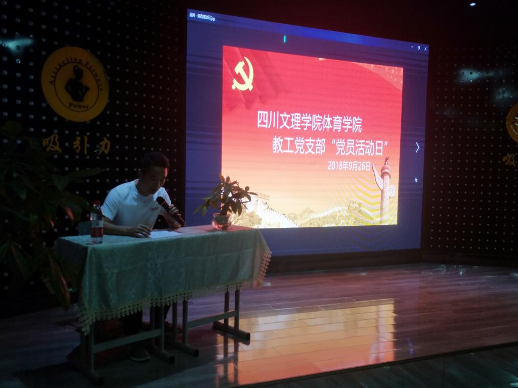 2018年9月26日下午17:00,贝博官网教工党支部在吸引力健身中心会议室,召开了党员活动日学习活动。本次活动由学院党总支书记佘涛主持,全体党员参加了学习活动。