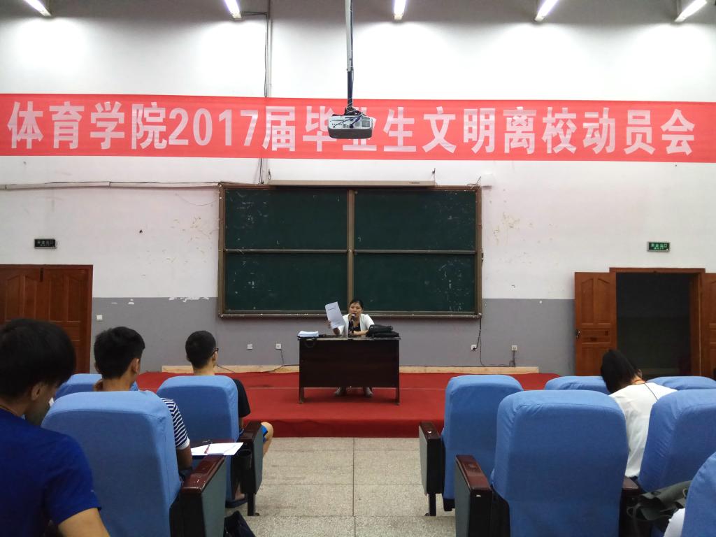 6月9日9:00,学院在一教学楼113教室召开了2017届毕业生文明离校动员大会,党总支副书记王进、学工办主任李霞、辅导员那明明及2017届毕业生参加了会议。