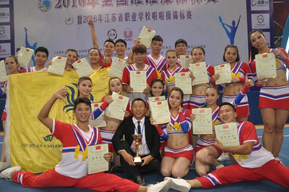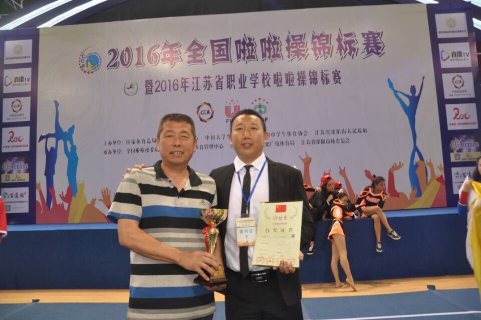 5月19日至23日,“2016年全国啦啦操锦标赛暨2016年江苏省职业学校啦啦操锦标赛”在江苏溧阳奥体国际花园体育馆隆重举行。贝博官网36名学生在董立院长和唐绪明老师的带领下参加了比赛,并在两个比赛项目中荣获了第一名。