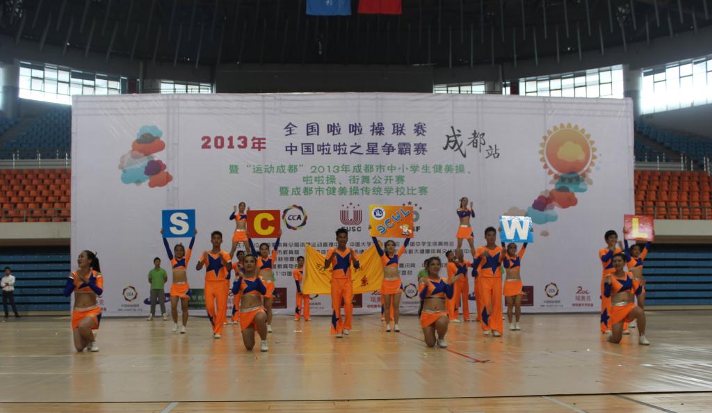 10月13日,2013年全国啦啦操联赛、中国啦啦之星争霸赛(成都站)在西南交通大学隆重举行。贝博官网由BB贝博艾弗森官方网站唐绪明老师指导的2011级4班啦啦操队参加了此次比赛,并取得技巧啦啦操三级自选动作第一名、爵士啦啦操第三名的佳绩。