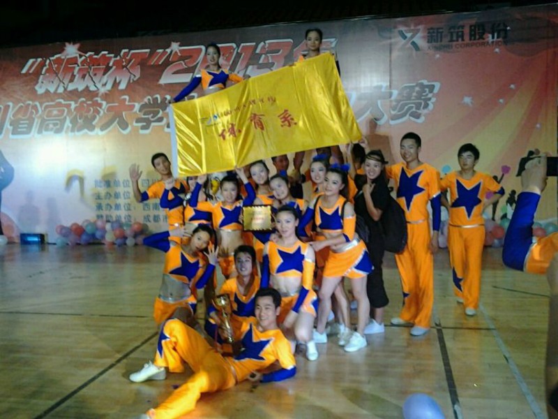 贝博官网BB贝博艾弗森官方网站2011级健美操专业班学生分别参加了技巧啦啦操和街舞啦啦操比赛。比赛中,同学们舞步激情四射,动作整齐划一,赢得评委的一致好评。最终,在三级技巧啦啦操自编套路专业组和街舞啦啦操专业组中分别取得专业组第一的好成绩,并荣获大赛最佳组织奖;贝博官网唐绪明教练被评为“新筑杯”2013年四川省高校大学生健康活力大赛最佳教练员,刘伟、冯秋红同学被评为本次大赛优秀运动员。
