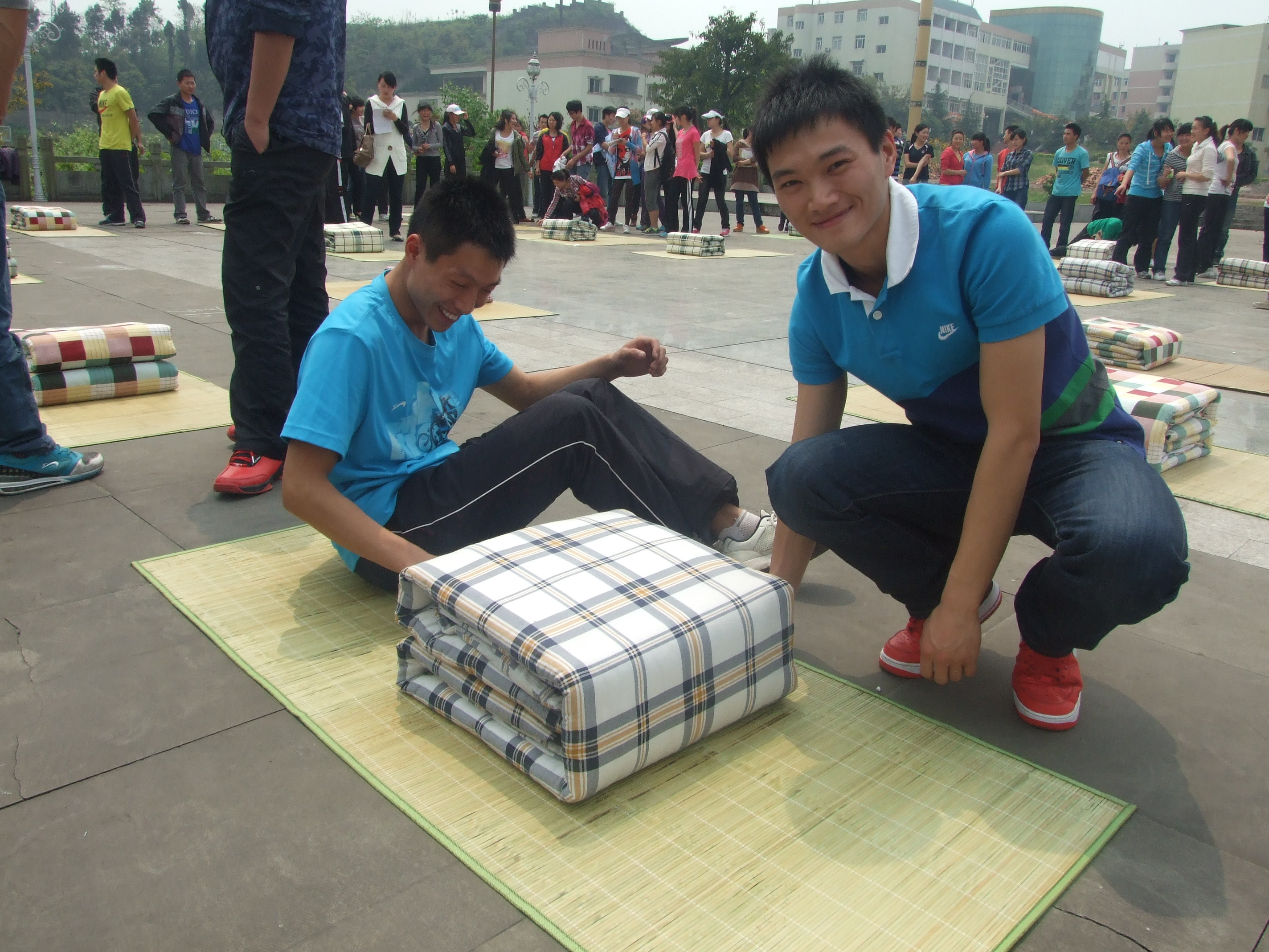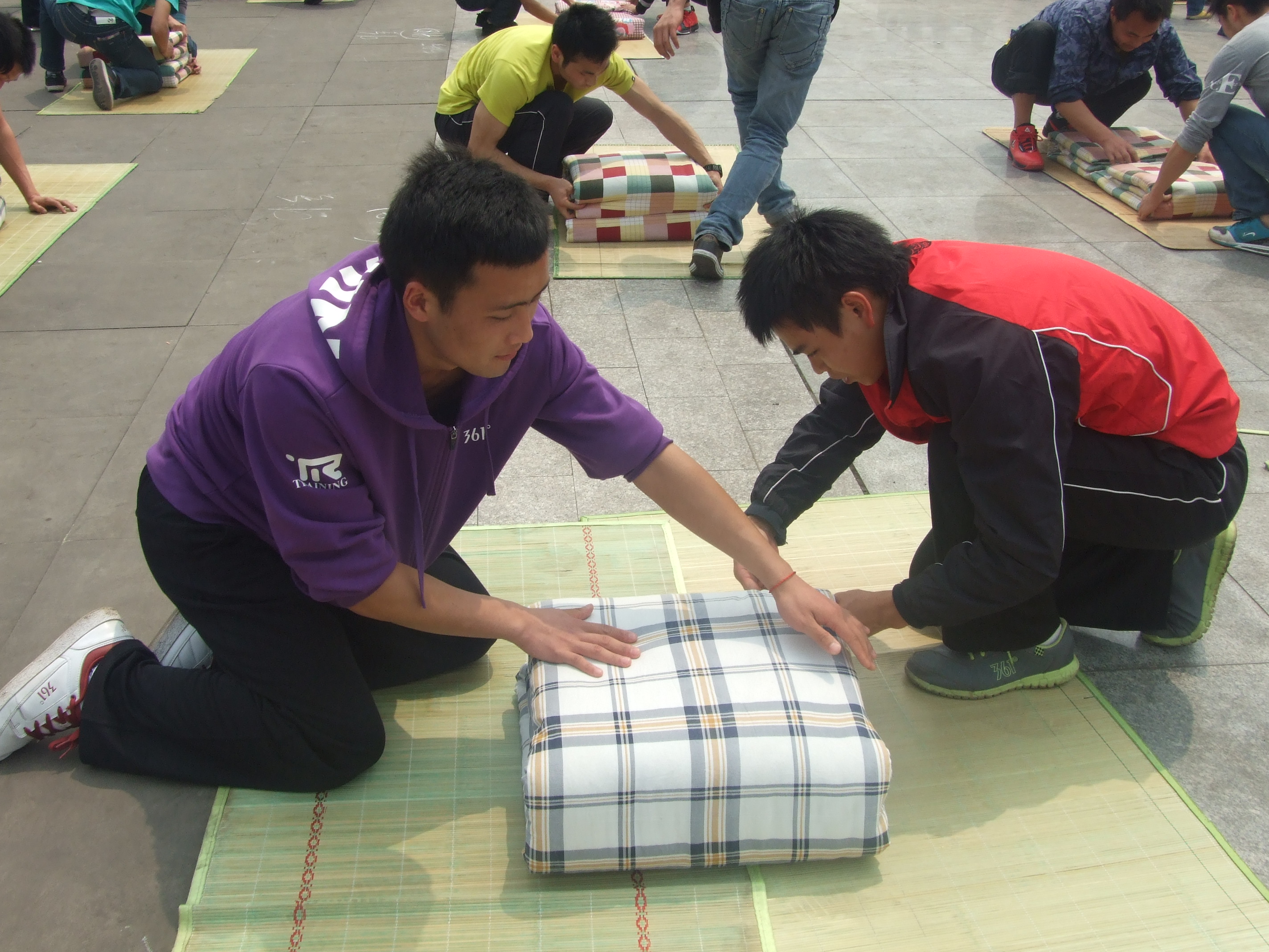 我系在学院人工湖广场举办的叠被大赛,虽炎炎烈日,但同学们的热情高涨。通过初赛和决赛,被子叠放整齐受到辅导员老师和同学们一致好评的寝室有:女生六舍302、313、314、315、407;男生九舍405、419、420、502;男生十舍406、506、512、516、614。最终,得分最高的四个寝室,女生六舍314、315;男生十舍406、506将代表体育系参加学院的叠被子比赛。
