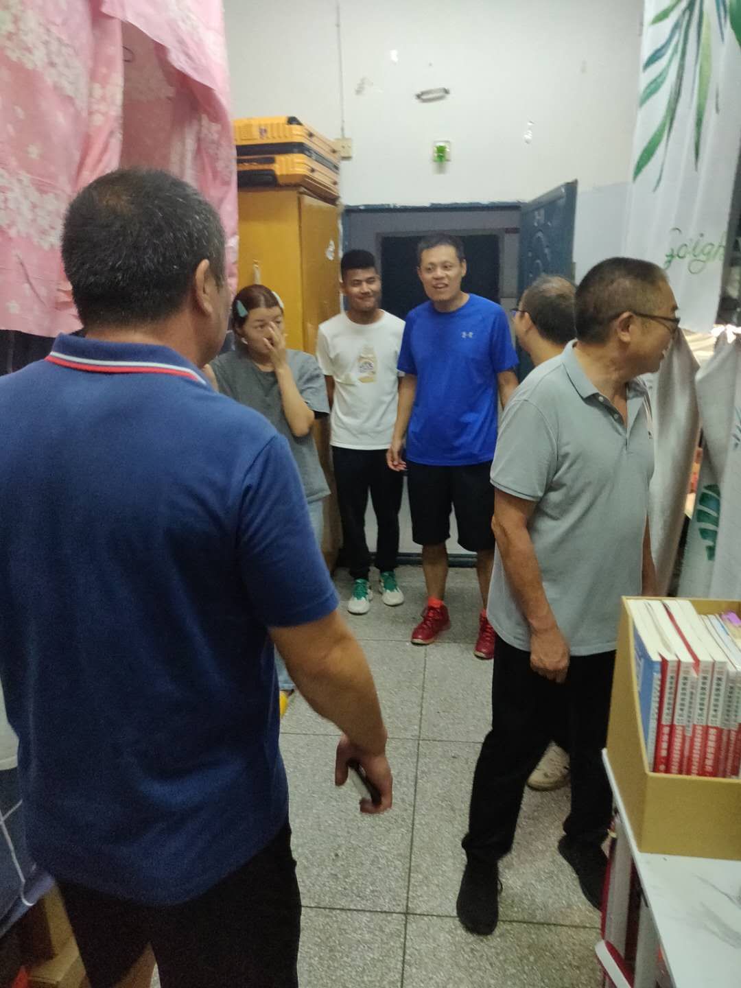 彭波、李文华、付宏、李进文老师走访了寝室6舍。老师们查看了寝室用电情况和内务情况。希望同学们能够尽快转变思想,适应学校学习和生活。养成良好的卫生和生活习惯,掌握新冠疫情肺炎及常见传染病预防及应急处置方法。