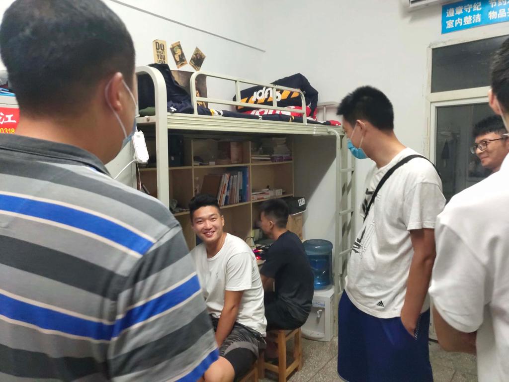 王兆忠、许汝霞、赵伟、靳昆仑老师走访9舍。在走访过程中,老师们与学生进行沟通交流,询问同学们返校后思想、学习、生活等情况。希望同学们在疫情特殊时期要保持宿舍整洁,注重个人卫生和生活习惯,勤通风,勤晾晒衣服、被子。同时要提升安全意识和集体观念,营造安全、文明、和谐的宿舍氛围。