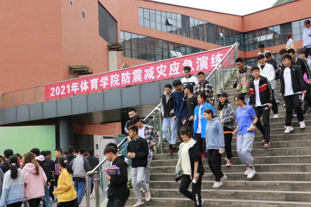 本次演练模拟了在在上课状态下地震突发,学生们紧急撤离的过程,整个过程组织严密。12时防震警报声准时响起,传媒楼4楼学生迅速做出反应,有序撤离传媒大楼,到达指定地点集合,整个过程约1分钟40秒。