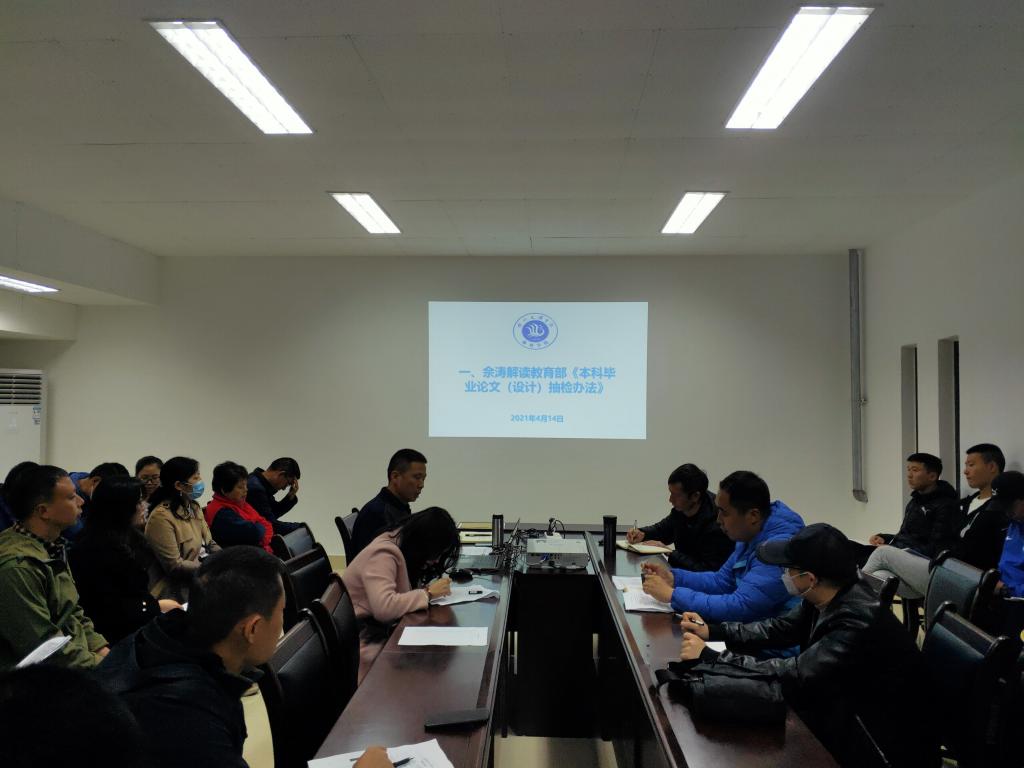 首先,佘涛院长解读了教育部《本科毕业论文(设计)抽检办法》,他指出:在当前师范专业认证以及毕业论文抽检背景下,本科毕业论文指导工作,在近几年将会是一项重要的工作,BB贝博艾弗森官方网站全体教职工应认清当前的形式,改变传统的思想,认真规范地推进毕业论文指导工作。