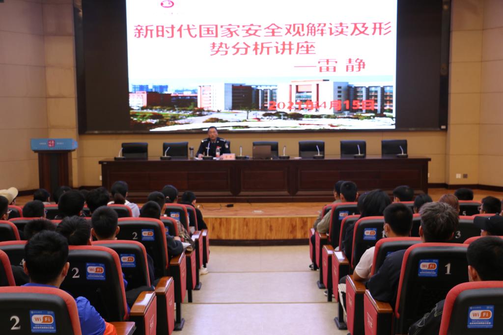 接下来,雷静同志结合第六个全民国家安全教育日“践行总体国家安全观,统筹发展和安全,统筹传统安全和非传统安全,营造庆祝建党100周年良好氛围”的主题,从三个方面对总体国家安全进行了全面的阐述。一是什么是国家安全,什么是总体国家安全观以及特点;二是国家安全面临的复杂严峻形势(国际、国内、省内);三是如何提高高校学生国家安全意识。