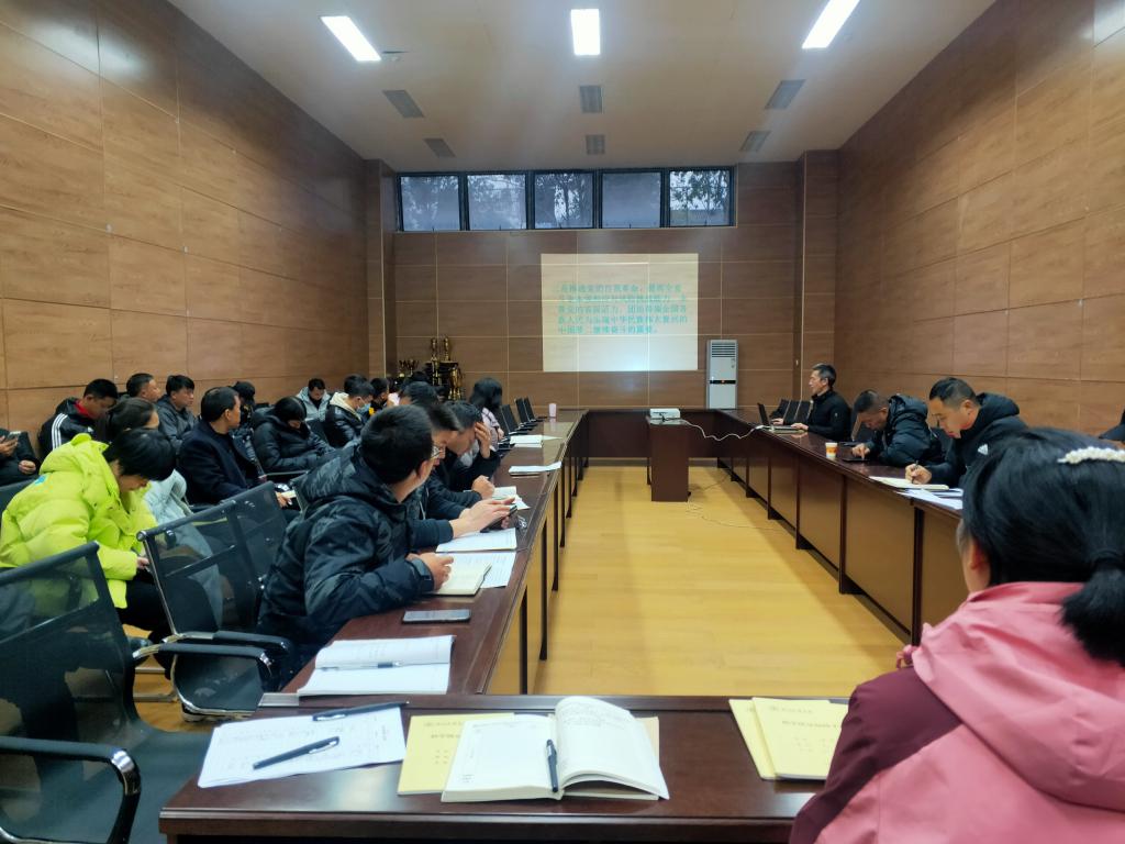 1215日,BB贝博艾弗森官方网站全体教职工在体育馆副馆集中学习党的十九届六中全会精神,党总支书记王兆忠主持学习会并作学习辅导。