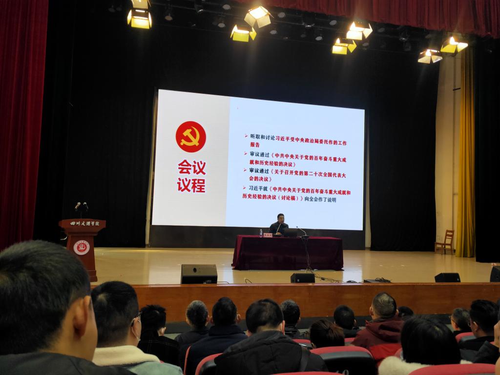1222日,副校长李壮成在莲湖校区多功能厅宣讲党的十九届六中全会和省委十一届十次全会精神。BB贝博艾弗森官方网站党总支书记王兆忠主持宣讲会。