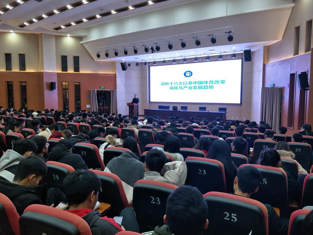 BB贝博艾弗森官方网站李进文老师于1212日晚19点在学术交流报告厅A厅举办了主题为“简析十八大以来中国体育改革成就与产业发展趋势”的学术报告。本次学术报告由BB贝博艾弗森官方网站院长佘涛教授主持,BB贝博艾弗森官方网站500余名师生参加。