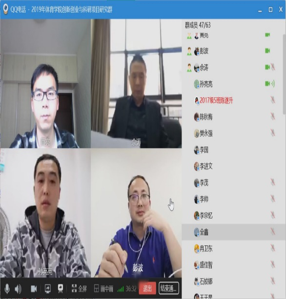 进一步推动学院大学生创新创业训练计划项目、大学生研项目有序开展体育学院于2020415下午召开大学生创新创业训练计划项目和大学生科研项目线上推进会。学院院长佘涛、副院长孙亮亮、党总支副书记彭波、教学科研办主任李进文以及项目指导教师和负责学参加了会议。会议由彭波主持。