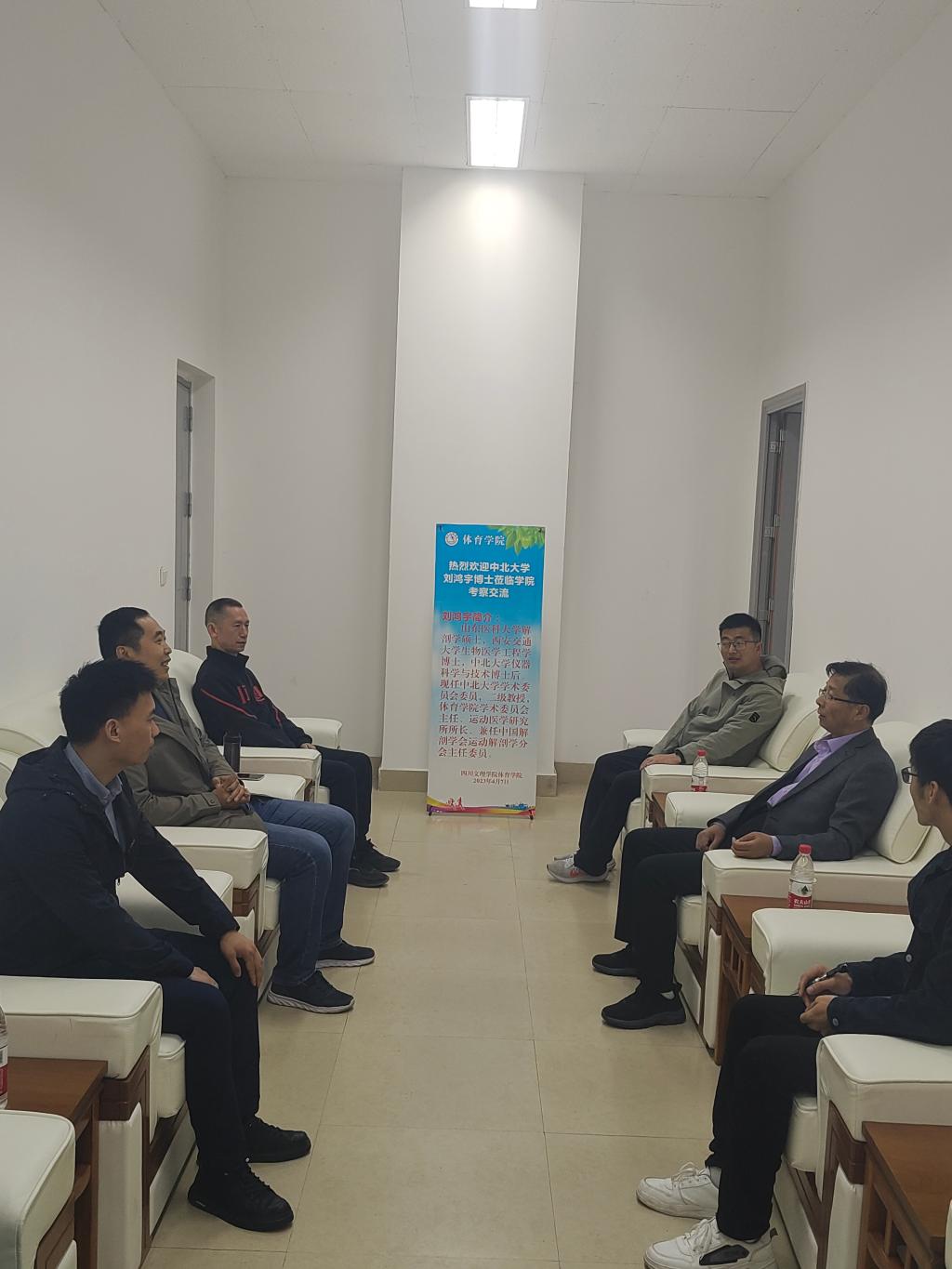 48日,中北大学运动医学研究所所长、二级教授,中国解剖学会运动解剖学分会主任委员刘鸿宇教授一行,来贝博官网进行交流。学院党委书记王兆忠、副院长孙亮亮、副书记靳浪陪同,王茂、盛佳智和周剑三位老师参与交流。双方就实验室建设、学科发展、人才培养、本科生毕业论文的写作及规范化等方面进行了深入的交流。