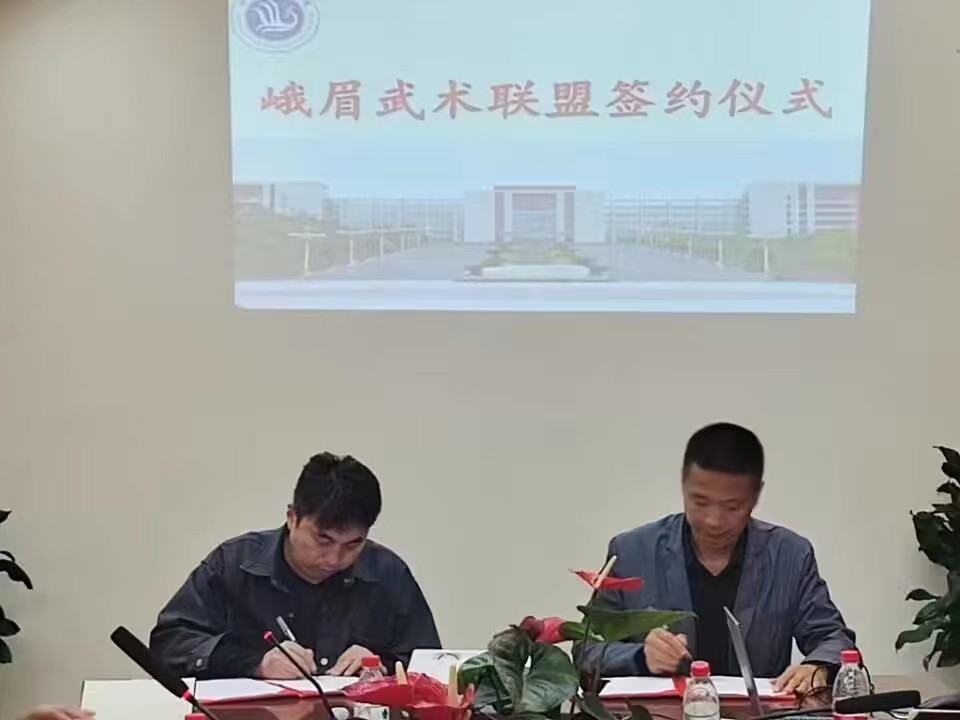 最后,两校代表共同签署了峨眉武术联盟协议。这份协议不仅象征着两校在武术领域的战略合作,更标志着峨眉武术将在两校之间搭建起一座坚实的桥梁。