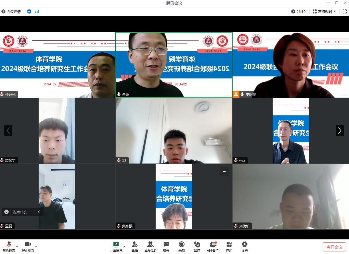 会议伊始,六位研究生就近期的学习工作情况及未来的规划进行了汇报。佘涛院长高度肯定了同学们的努力,并就四川文理学院与西南医科大学的体育研究生联合培养方式、联合培养进展进行了解析。