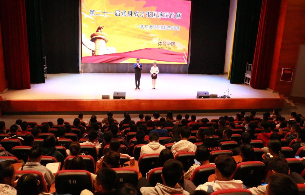 2019年10月26日上午9:30,BB贝博艾弗森官方网站在文传多功能厅举办“修身、成才、报国”演讲比赛。党总支书记王兆忠、党总支副书记彭波、团总支副书记马思远老师、辅导员祝利平老师及2019级全体同学出席了此次活动。