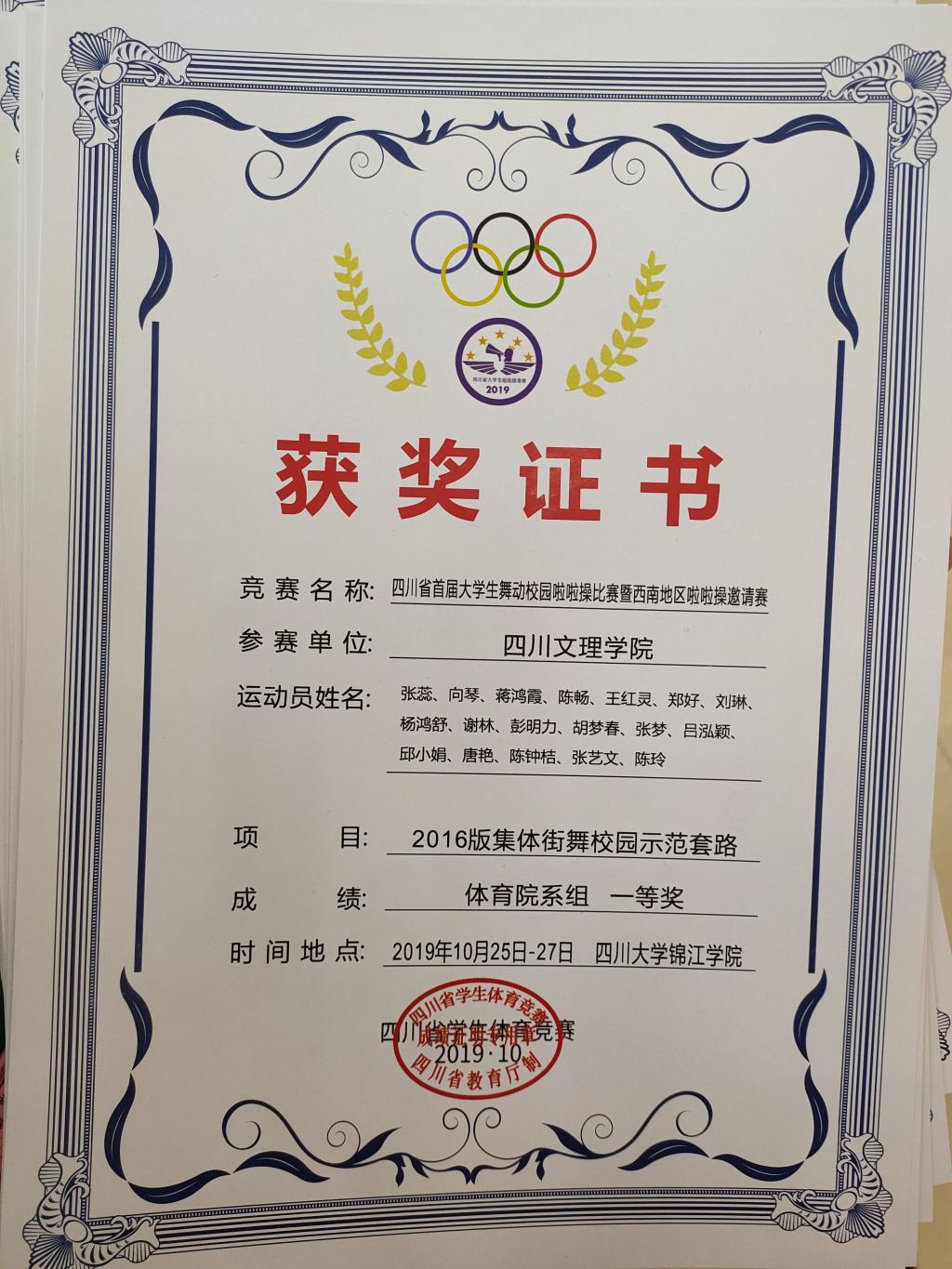 四川省首届大学生舞动校园啦啦操比赛暨西南地区啦啦操邀请赛在四川大学锦江学院隆重举办。BB贝博艾弗森官方网站谢林,向琴,陈畅,张蕊,刘琳等十八名同学组队在教练唐绪明老师的带领下代表学校参赛。赛前,教练唐绪明老师牺牲了大量的休息时间悉心指导,学院许汝霞老师也给予了及时的帮助,同时,队员们发扬“艰难困苦,玉汝于成”的文理精神刻苦训练。在比赛中,队员们发扬团队拼搏的精神,以饱满的激情和精湛的技艺,赢得了观众的喝彩和评委的好评。在2016校园啦啦操街舞示范套路和2016版校园啦啦操花球示范套路两场比赛都获得了体育院校组的第一名好成绩。唐绪明老师也获得“优秀裁判员”和“优秀教练员”的荣誉。