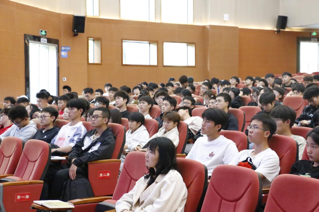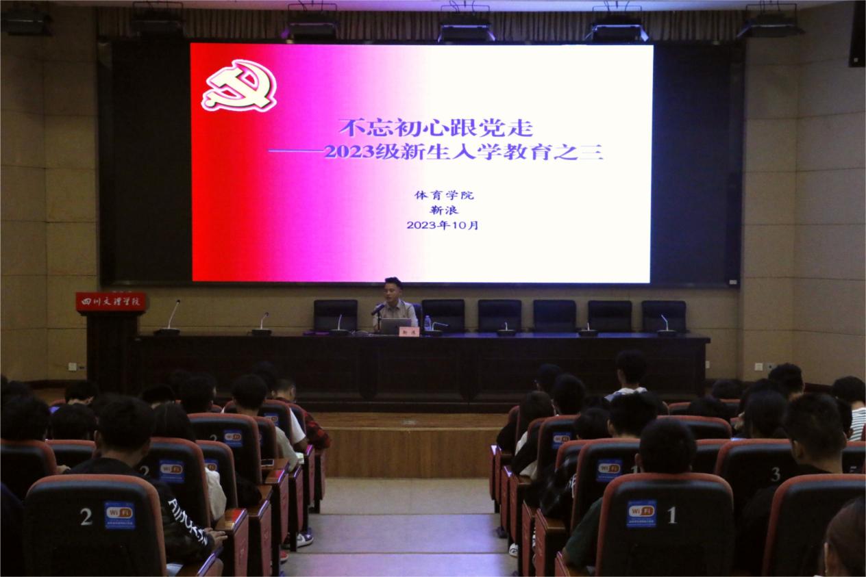 20231013日下午1点,BB贝博艾弗森官方网站在学术报告厅A厅开展了以“不忘初心跟党走”为主题的新生入学教育讲座。学院党委副书记靳浪担任主讲,学工办主任祝利平、辅导员李波以及2023级全体新生参加讲座。