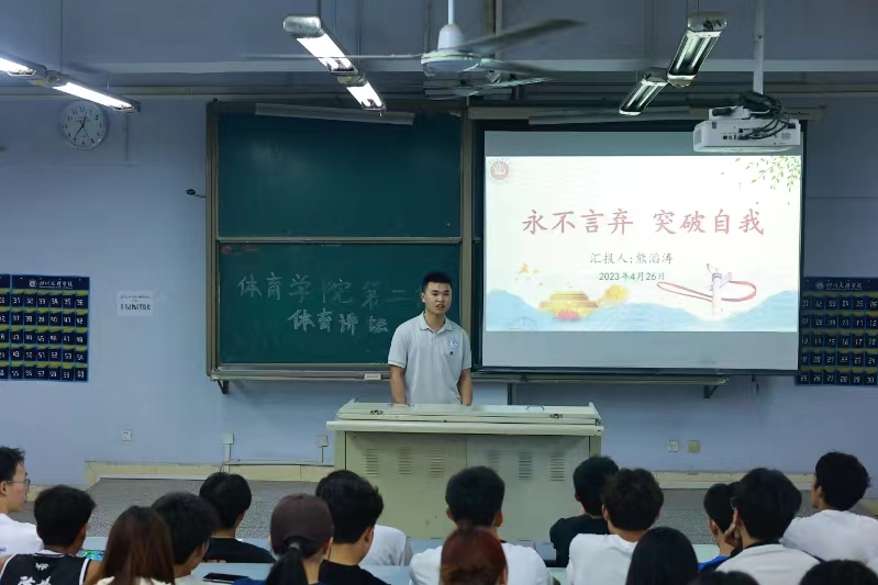 2024426日中午1230分,BB贝博艾弗森官方网站在博文楼412413教室同时开展体育讲坛第二期,本期讲坛由2024年国家奖学金获得者熊滔涛和范一担任主讲,学工办主任祝利平和辅导员李波主持。