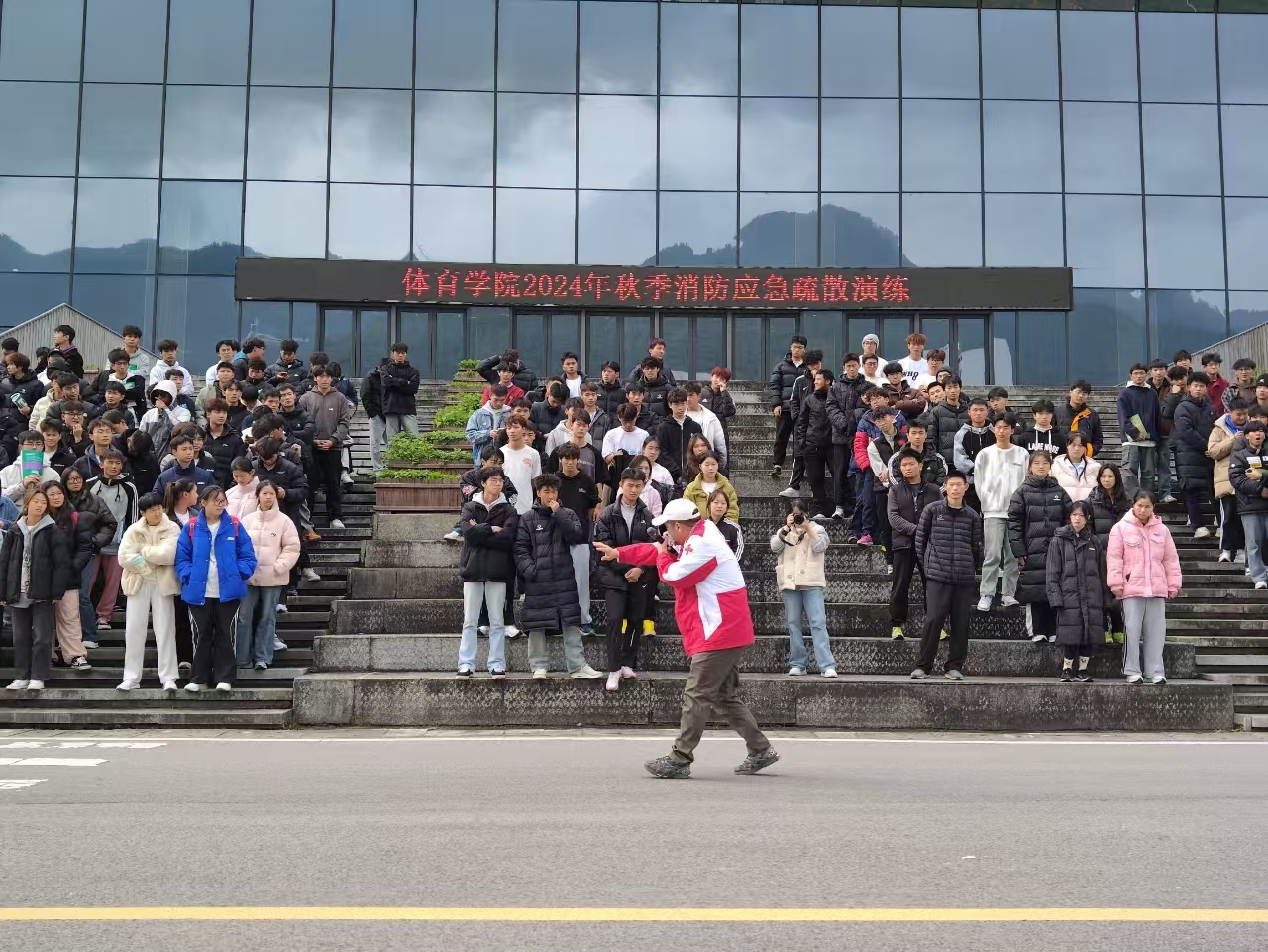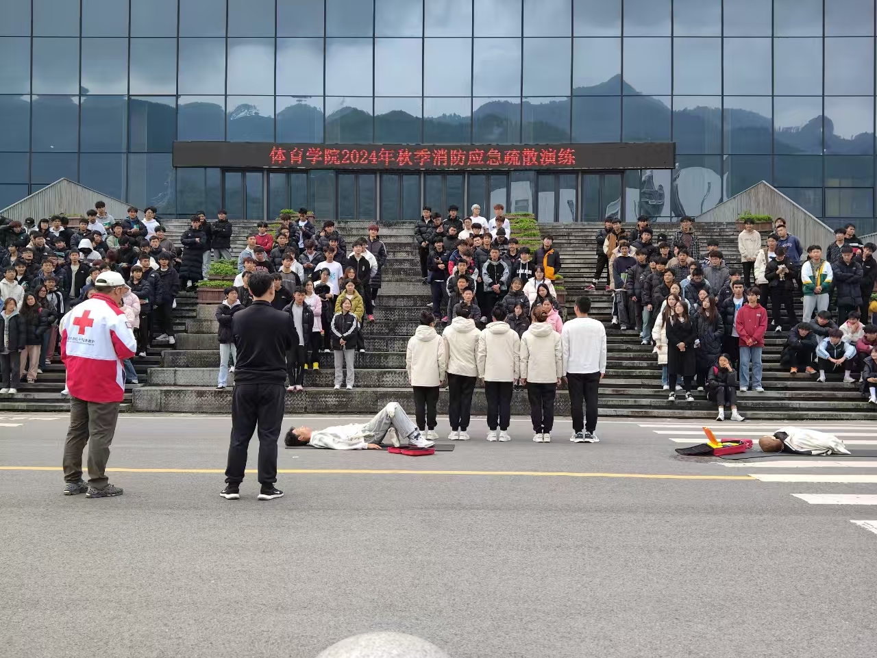 2024112212点整,BB贝博艾弗森官方网站于体育馆开展了消防应急疏散演练。学院党委副书记靳浪、辅导员邓超、李波、专任教师宋京林、7 名红十字救护员及2024 级全体学生参与此次活动。