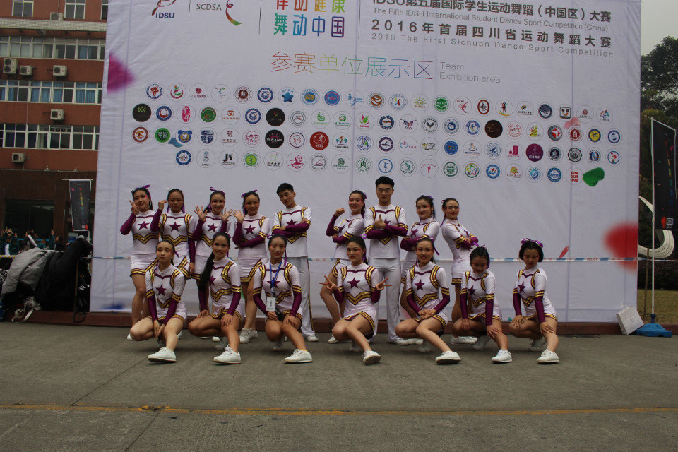 2016年12月18日,IDSU第五届国际学生运动舞蹈(中国区)大赛,在成都BB贝博艾弗森官方网站隆重举行。贝博官网16名学生在唐绪明老师的带领下参加了此次比赛,并获得了啦啦舞自编套路一等奖。