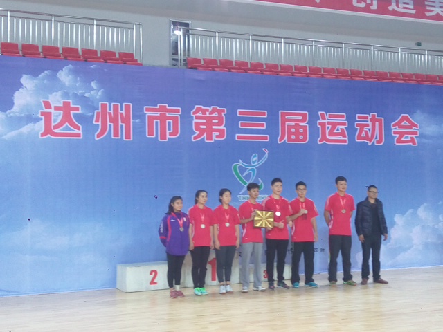 11月11日—14日,达州市第三届运动会气排球比赛在大竹县体育馆隆重举行,樊永强老师带领贝博官网排球班的李文诚、杨雨卓、张启隆、张建鹏、彭巧和袁琳等六名同学,参加了本次比赛。