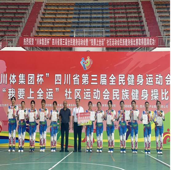 2021年“川体集团杯”四川省第三届全民健身运动会暨“我要上全运”社区运动会于919日落下帷幕。在教练员冉卫东,李慕怡的悉心指导下,队员们经过近一个月的艰苦训练,贝博官网参赛队在与各地级市10支代表队角逐中脱颖而出,取得佳绩,获得民族健身操规定套路B组一等奖。