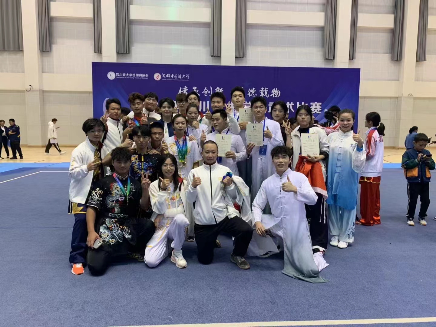 1027—29日,由四川省教育厅主办、四川省大学生体育协会执行、成都中医药大学承办的2023年四川省大学生武术比赛在成都中医药大学温江校区体育馆成功举行,来自39所高校的近400名运动员参加本次比赛。
