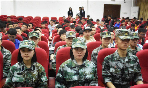 为普及国防知识、深化国防教育,鼓励有志从戎的学生应征入伍,投身国防事业, 4月9日晚鸭脖在和盛校区二三教的学术报告厅举办了大学生征兵宣传讲座,经济贸易系、经营管理系、旅游管理系男生代表参加了讲座。