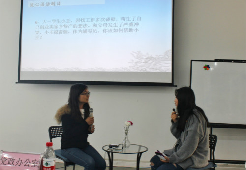 为了深入学习贯彻党的十九大精神,推动学院辅导员职业化、专业化发展,提升辅导员的职业技能和工作水平,3月20日下午,学院第六届辅导员职业能力大赛在和盛校区5103商品展览室顺利举行。副院长张军、党政办主任池秋平、党委宣传部部长梁琼、人事处副处长李刚、学生处处长王军、团委书记张家林、学生处副处长冯端担任比赛评委,各系党总支书记出席本次比赛,各系部辅导员观摩了比赛。