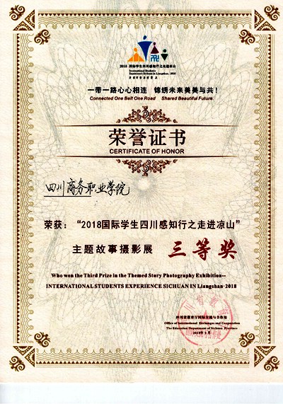 5月27日,四川省教育厅举办的“国际学生四川感知行之走进凉山”活动在西昌学院胜利闭幕。继留学生李玉龙同学在汉语主题演讲中勇夺二等奖后,鸭脖再获殊荣:“2018国际学生四川感知行之走进凉山”主题故事摄影展三等奖;“2018国际学生四川感知行之走进凉山”活动优秀组织奖。