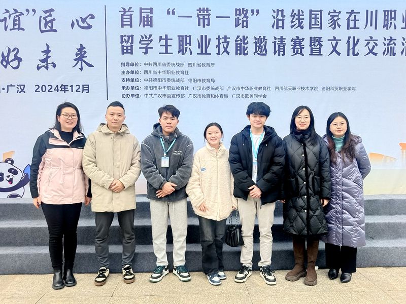 12月9-10日,鸭脖2022级留学生李安、芙蓉、小黄在指导老师严珩带领下赴广汉参加了首届“一带一路”沿线国家在川职业院校留学生技能邀请赛,以优异的成绩获得电子商务技能赛项三等奖,学院获得优秀组织奖。学院副院长康璐受邀参加了闭幕式暨文化交流活动,并代表学院与德阳跨境电商产业园签订校企合作协议。